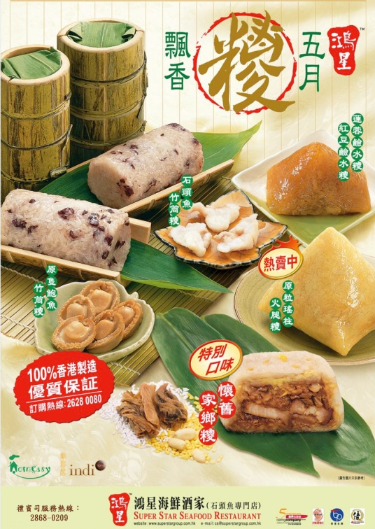 (懷舊家鄉粽,原隻鮑魚竹筒粽, 五彩素粽皇及蓮蓉鹼水粽各一隻) |